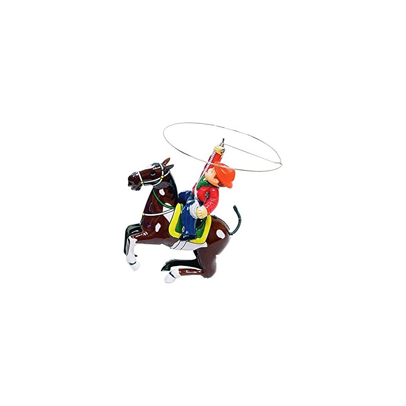 Alexander Taron Importer MS418 Tin Cowboy with Rope; Horse Stands Up an d Turns On Hind Legs