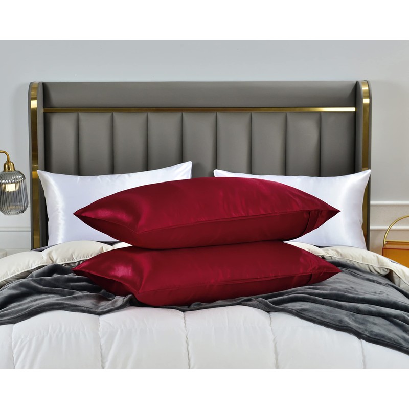 Alexandra's Secret Home Collection Satin Pillowcase for Hair and Skin, Pack of 2 - Feels Like Real Silk Pillow Cover - Satin Pillow Cases Set of 2 with Zipper Closure (Burgundy, Queen)