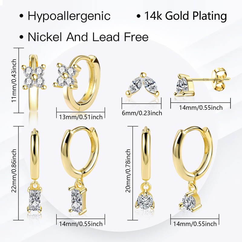 ALEXCRAFT Dangle Small Gold Hoop Earrings Set for Women CZ Huggie Cartilage Stud Earrings Multiple Piercings Jewelry