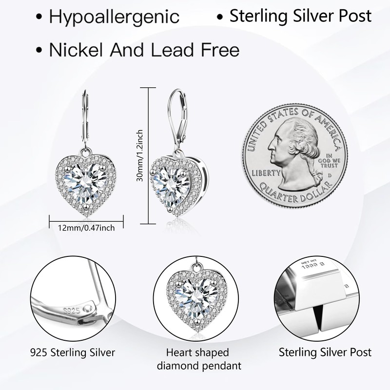 - Women's silver hanging earrings: perfectly match your different wearing styles and outfits. The heart earrings silver 925 glitter are suitable for various occasions, such as engagement, anniversary, wedding, prom, graduation, party.