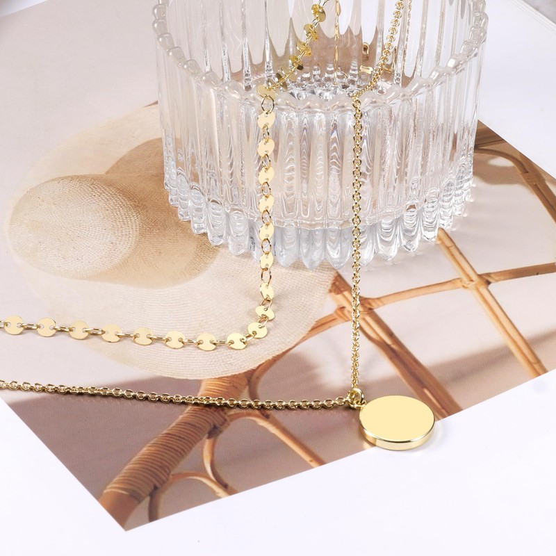 - Double-layer necklace design: multi-layer necklace in 2-in-1 design, it consists of a classic chain with thin round discs and a necklace with round pendant. The layers of the necklace are fixed and cannot roll up when worn. Comes with an extension chain, you can adjust the length to fit your neck at any time.