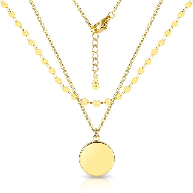 - Necklace size: pendant necklace O-shaped chain length 40 cm / 16 inches + disc chain length 38 cm / 15 inches + 5 cm / 2 inches extension chain tail row engraved 925, with strong lobster clasp, disc pendant 14.5 mm x thickness 2 mm. Easy to carry to prevent falling off. This adjustable double layer necklace can meet the needs of a variety of people.
