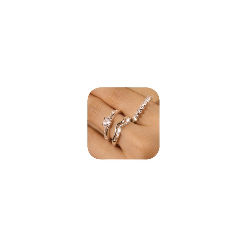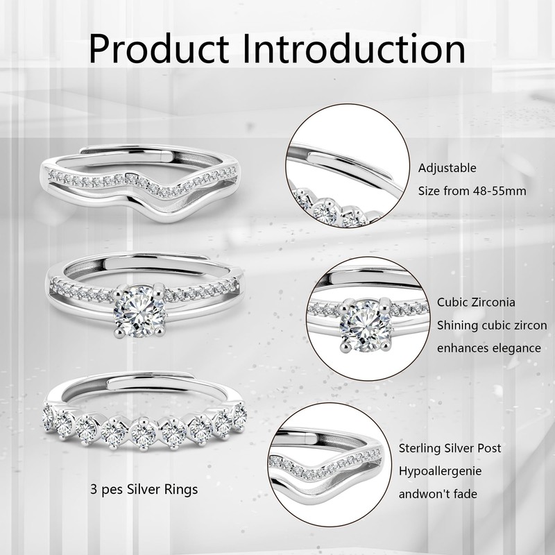 ALEXCRAFT Rings Women Set Womens Rings Ster Silver Adjustable Ring For Women Set With Cubic Zircon Stones Stackable