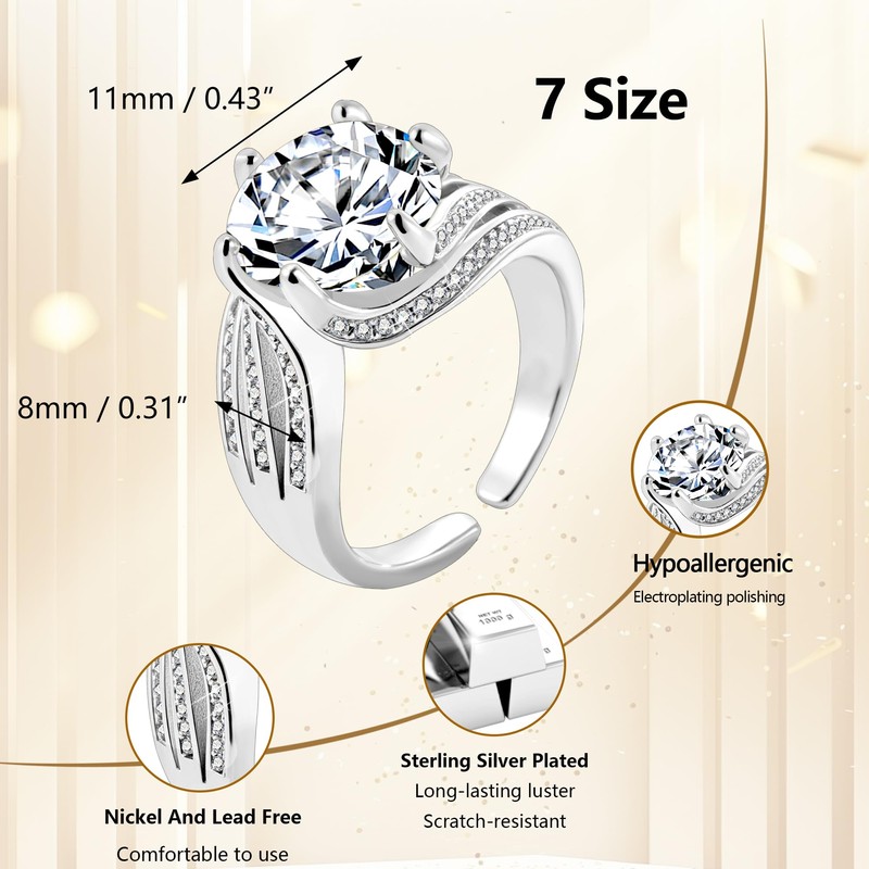 - HIGH QUALITY SILVER RING FOR WOMEN: High quality AAAAA cubic zirconia sparkle brilliantly and exude timeless elegance. These adjustable rings for women are made of silver plated brass with smooth surface, are durable and hypoallergenic, allergy-free, nickel-free, lead-free and cadmium-free to prevent skin irritation. You can wear them with confidence and will feel comfortable.