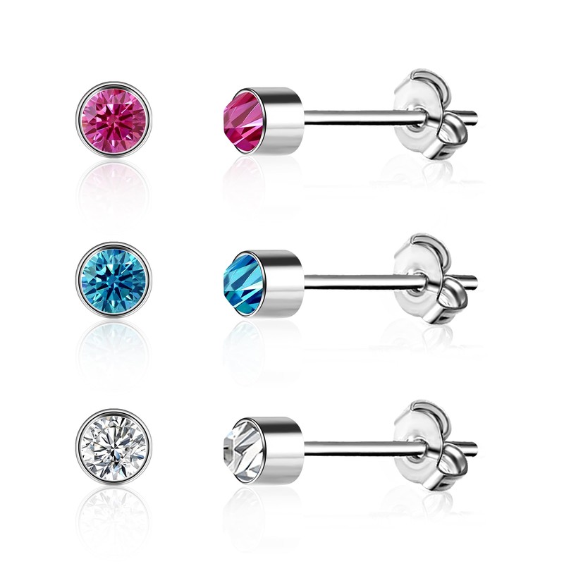 - ❤Multiple styles: white CZ stud earrings, pink CZ stud earrings and blue CZ stud earrings, 4mm in size. These hypoallergenic earrings are the right size for most people. The earring styles are so classic, cute and popular that women and men simply need to love them.