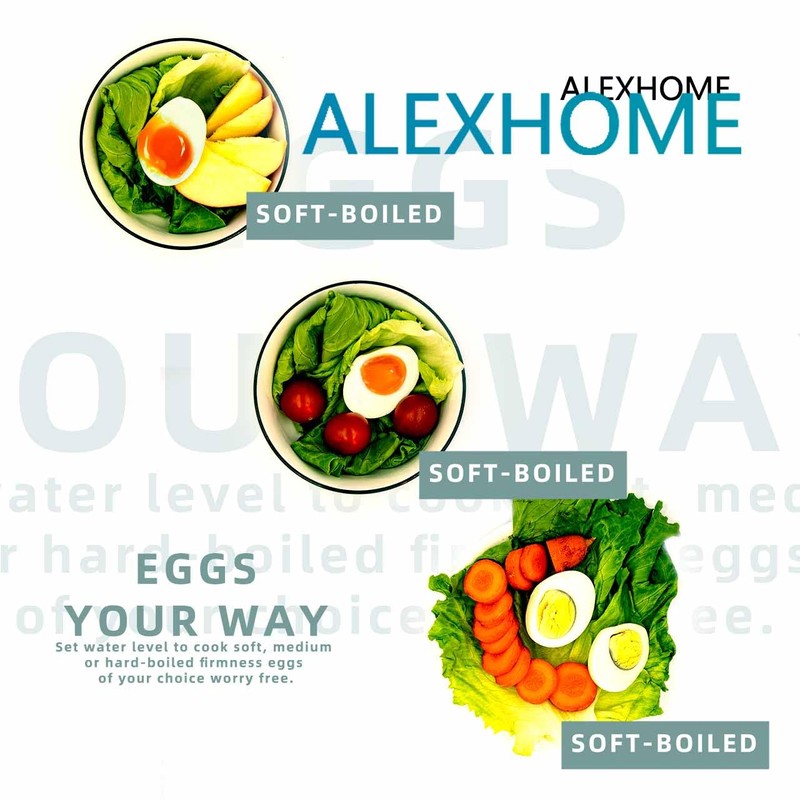 - High-Quality Materials and Easy Cleaning: Constructed with premium stainless steel and durable plastic, the ALEXHOME Egg Cooker is designed to last. The removable parts and non-stick coating make cleaning a breeze. Simply disassemble and wash the lid, egg tray, and heating plate for quick and easy maintenance.