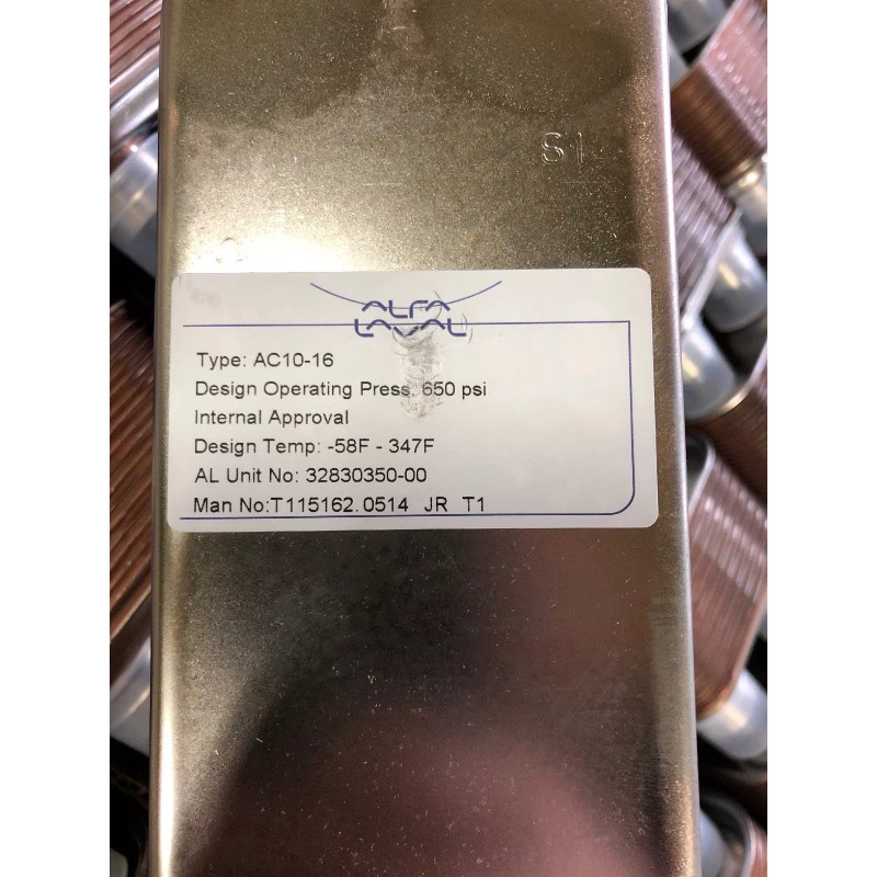 Alfa Laval NEW, ALPHA LAVAL, AC10-16, BRAZED PLATE HEAT EXCHANGER, -58 - 347F, R410A. (41C)