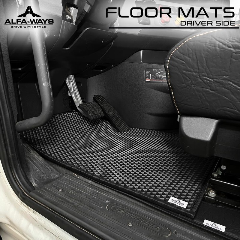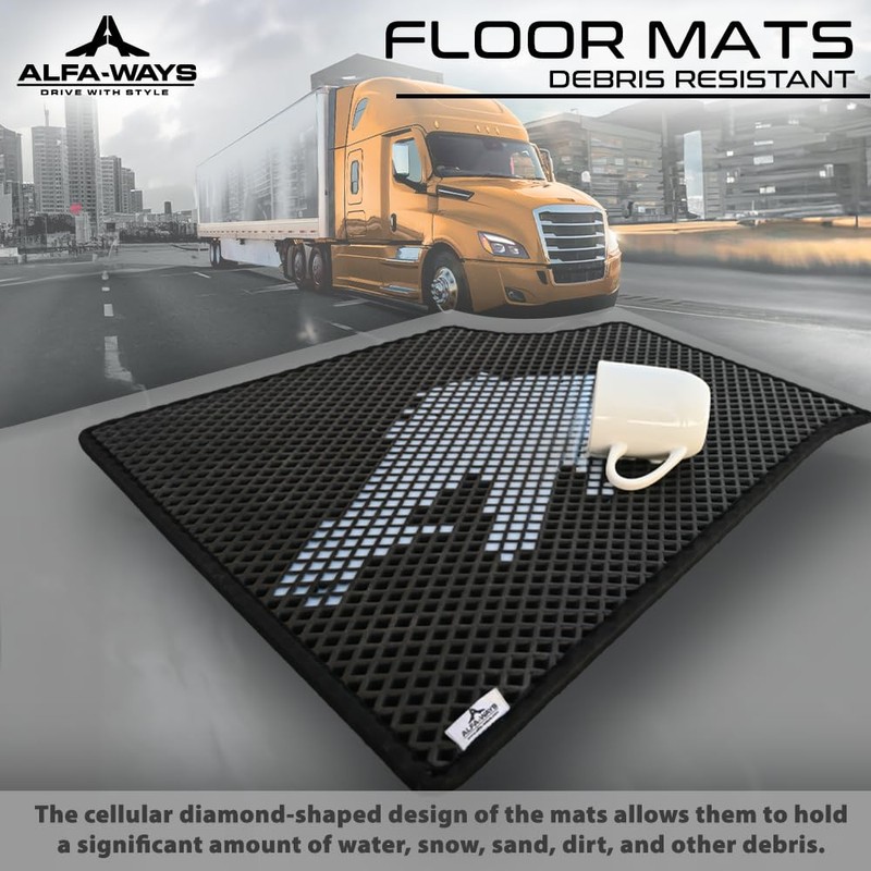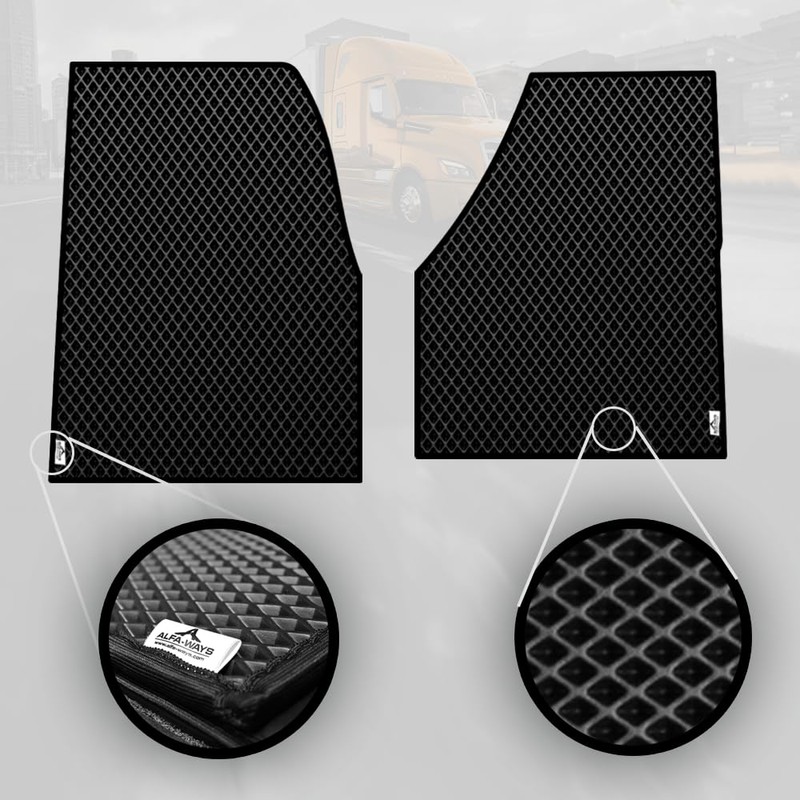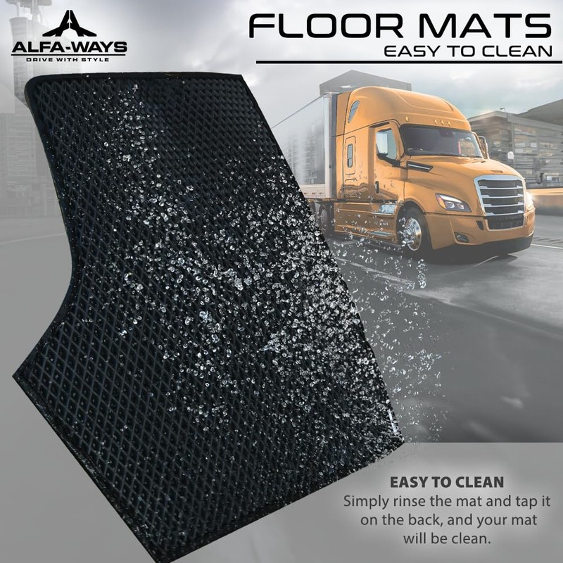 ALFA-WAYS Rubber Floor Mats fits Freightliner Cascadia 126 (2018 - Current) - All Weather Floor Mat 2 pcs Driver & Passenger Floor Mats for Trucks - Floor Liners for Trucks and Black Protective Mat