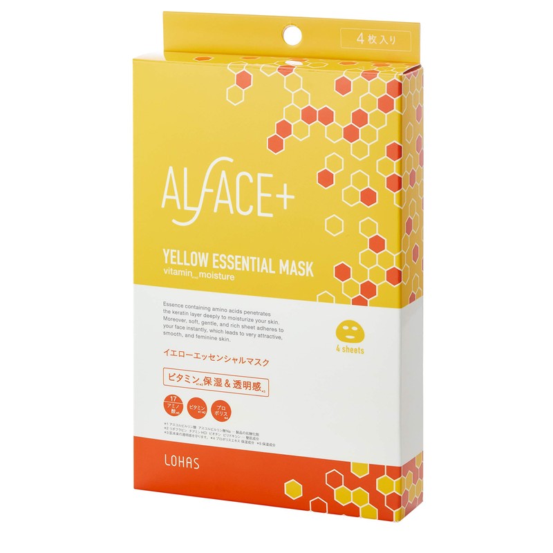 ALFACE Yellow Essential Mask, 4 Pieces, Face Mask, 0.8 fl oz (25 ml) (x 4)