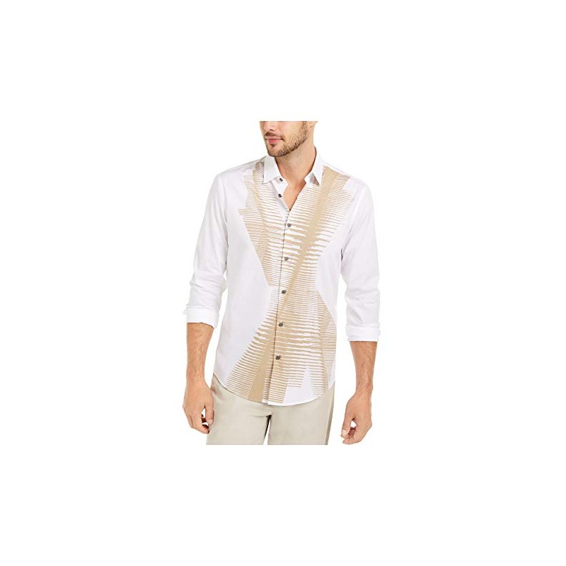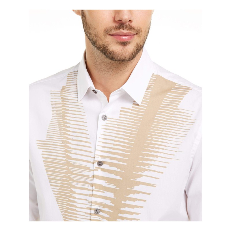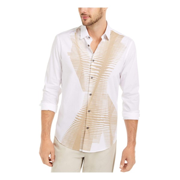 Alfani Mens Shirt Beige Button Down Abstract Print White XL