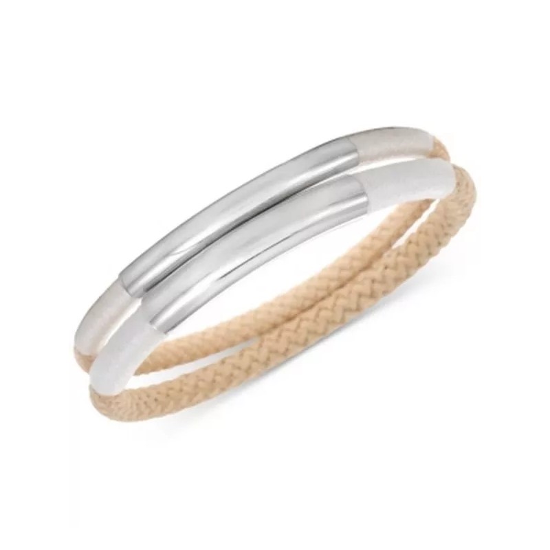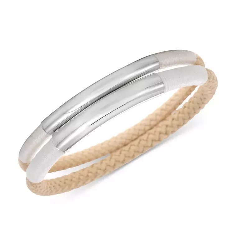 Alfani Silver-Tone 2-Pc. Set Curved Bar & Braided Rope Bangle Bracelets, Jewelry & Watches Fashion Jewelry - Bracelets.
