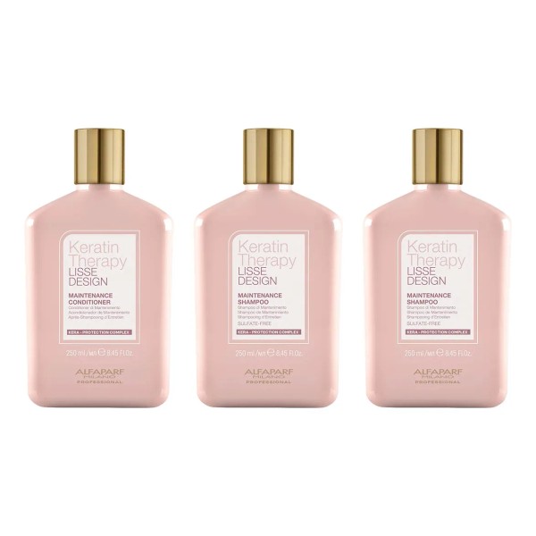 🌿 El Kit Alfaparf Lisse Design Maintenance incluye 2 Shampoos + 1 Acondicionador diseñados especialmente para el cuidado del cabello alisado con keratina, prolongando sus efectos y manteniendo una melena suave, brillante y libre de frizz por más tiempo. 💆♀️💖