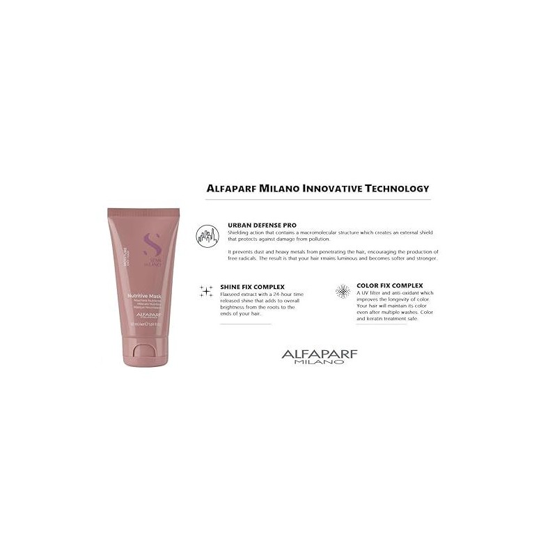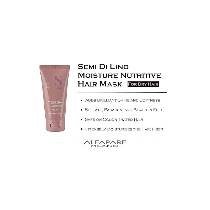 What are the benefits and features of Alfaparf Milano Semi di Lino Moisture Nutritive Mask 50ml?- Intensive anti-dryness treatment that deeply nourishes, moisturizes, and strengthens the hair fiber.
