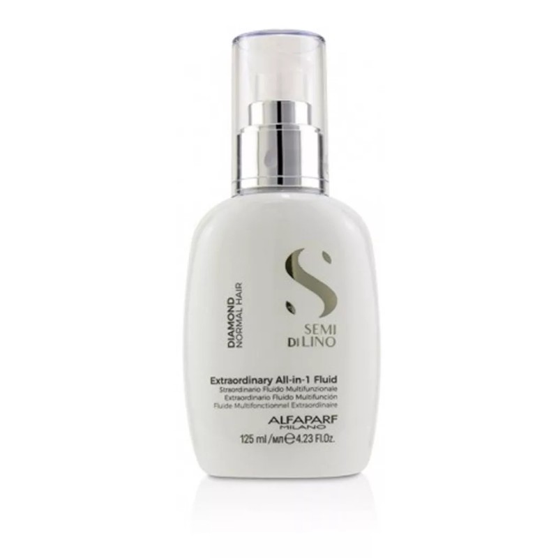 Extraordinary all-in-one Fluid es un fluido Leave-in que aporta un brillo extremo e inmediato, desenreda el cabello, ayuda a proteger frente a la radiación ultravioleta, protege el color cosmético, previene la formación de puntas abiertas, controla el efecto encrespado, protege contra el efecto de la humedad, sella las cutículas, deja el cabello suave y sedoso y facilita el brushing.