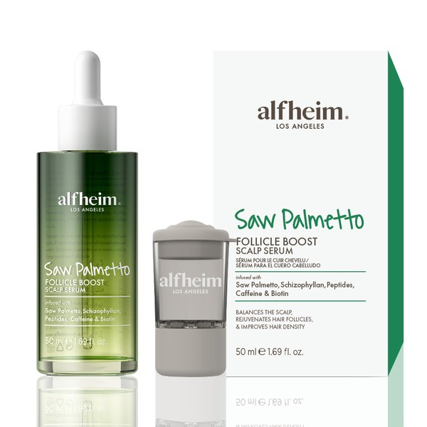 ALFHEIM Saw Palmetto Scalp Serum for Boost Follicle - Infused With Caffeine, Biotin for Thicker Hair - Balance Scalp, Rejuvenate Hair Follicles & Improve Hair Density - 1.69 fl oz + Serum Applicator