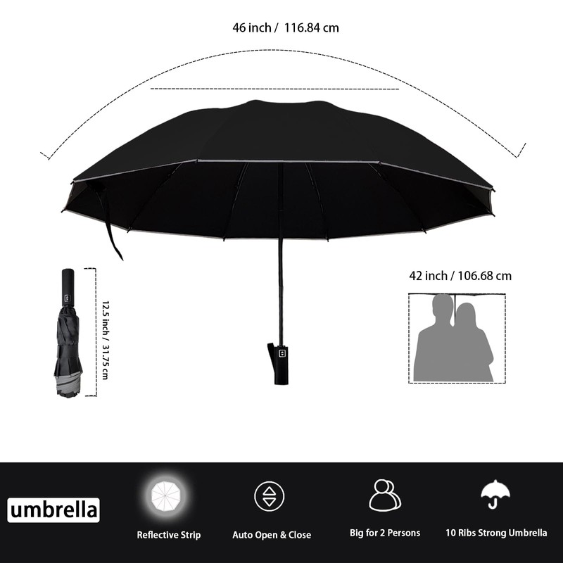 - Superior Umbrella for Rain Windproof:This inside-out windproof umbrella boasts 10 reinforced fiberglass ribs and a strong alloy steel shaft, lightweight as it is, also easy to withstand strong winds and heavy rain without turning inside out.