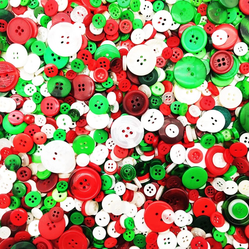 💐 600-700Pcs Christmas Craft Buttons Mixed Red Green White Button for Crafts Assorted Sizes Button Green Red White in Bulk