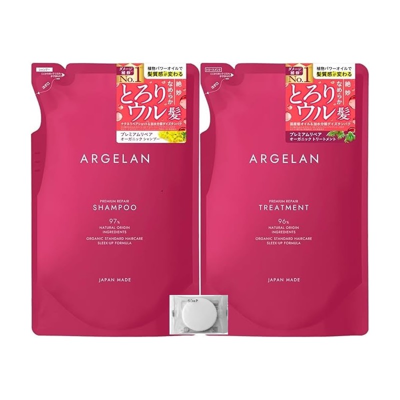 Algeran Premium Repair Shampoo Refill 13.5 fl oz (400 ml) + Treatment Refill 13.5 fl oz (400 ml) + Small Soap [Algeran Pink Refill SPCD S]