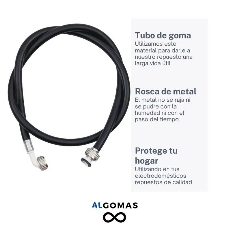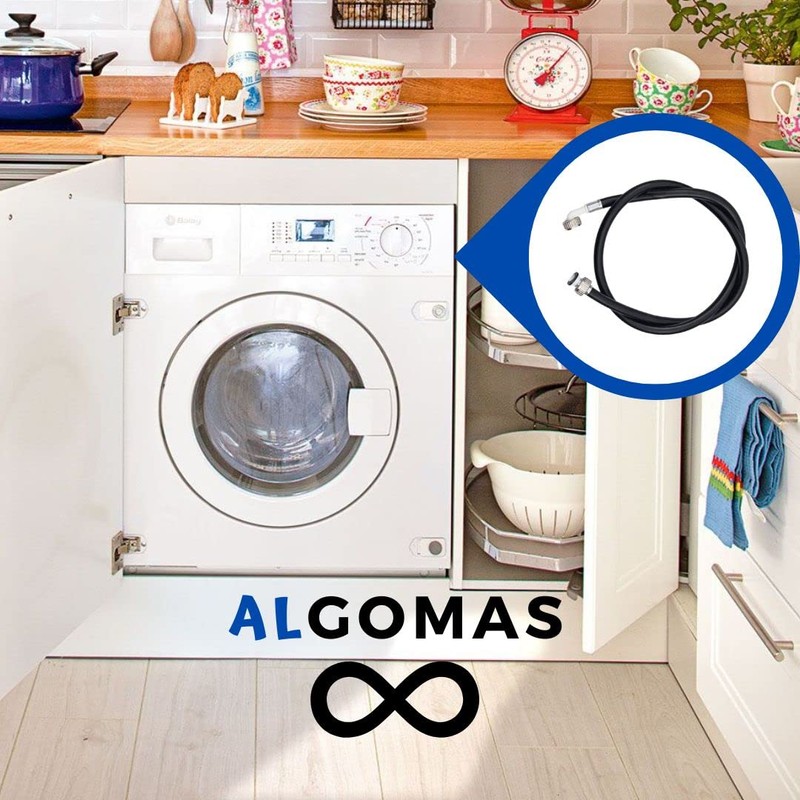ALGOMAS® Premium Universal Water Inlet Hose for Washing Machines and Dishwashers, Metal Thread and Rubber Hose, 1.5m Long, Temperature 90°C, Metal Clamp, Flexible