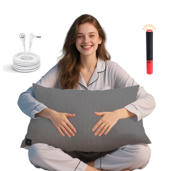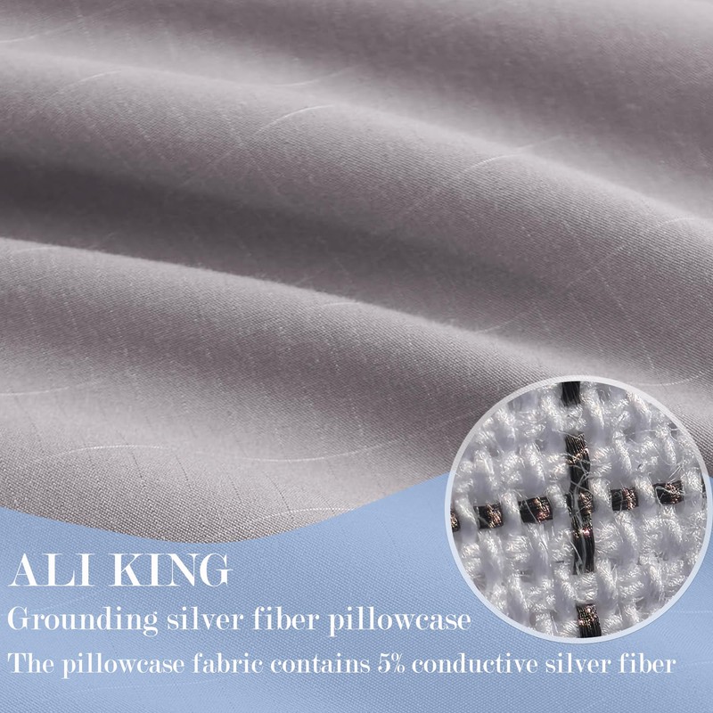 Ali King Grounding Pillowcase, 5% Conductive Silver + 95% Soft Cotton King Size Earth Grounding Pillow Cases with Grounding Cord for Improve Sleep (Dark Grey, King (20x36inches))