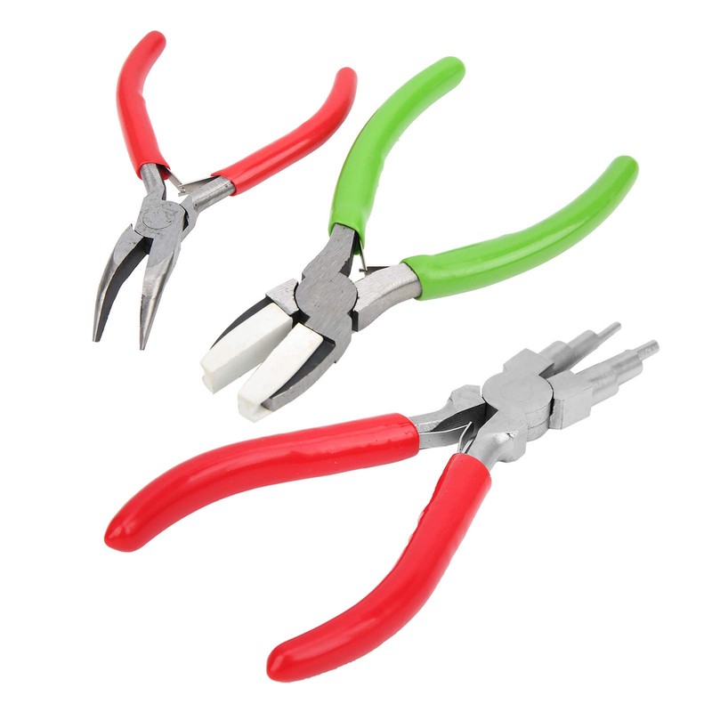 Alicates para hacer fianzas de 3 piezas, incluyen alicates de punta curva, alicates de nailon, alicates para joyas de seis secciones, mini herramientas para hacer joyas, no se oxidan fácilmente y son