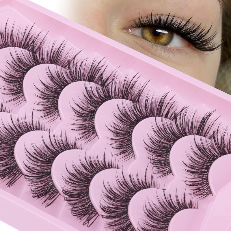 ALICE False Eyelashes Fairy Lashes Wispy Cat Eye Lashes Spiky Mink Lashes Pack Thin Band Natural Manga Fake Lashes Strip 7 Pairs