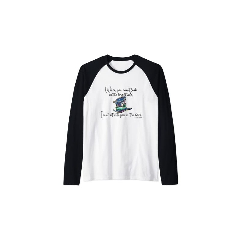 - This design features the quote "When you can't look on the bright side I will sit with you in the dark." from the book Alice in Wonderland.