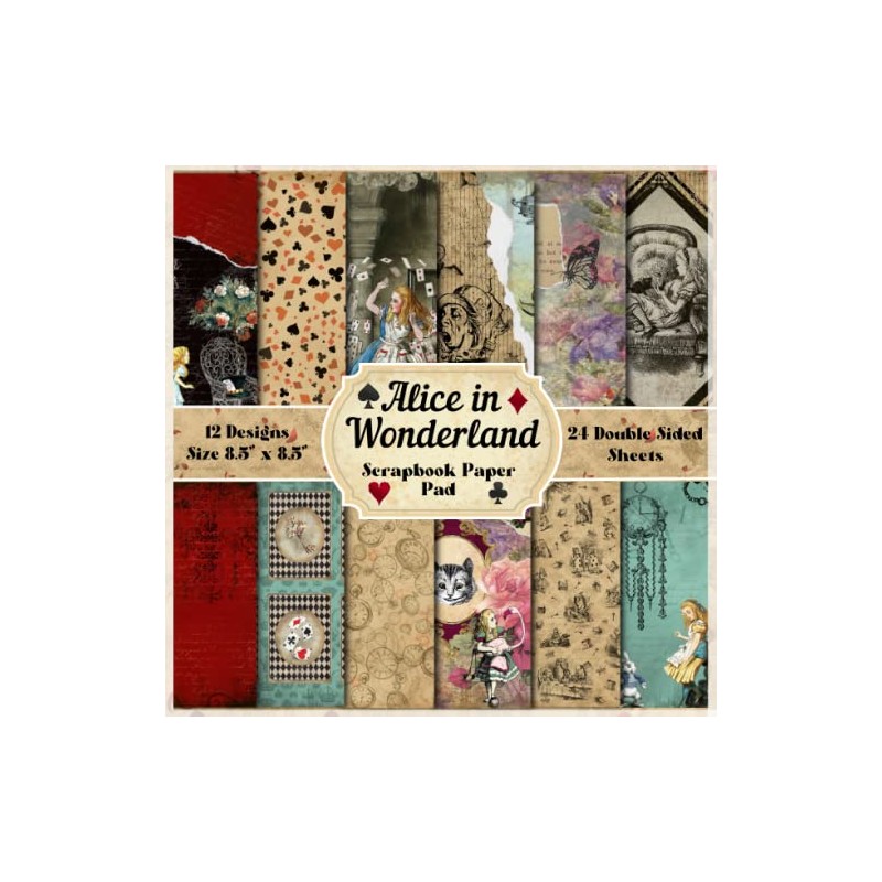Alice in Wonderland Scrapbook Paper Pad | 12 Designs 24 Double Sided Sheets of Alice Adventures Inspired Patterns: Vintage Fairy Tale Pages for Scrapbooking Junk Journal Collage