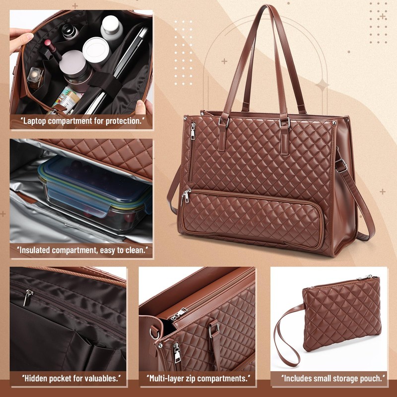 - 2 In 1 Handy Lunch Bag: design This women's tote bag with lunch compartment combination a lunch bag and a laptop bag in one, with internal compartments designed to store laptops, lunch, drinks and valuables; When the insulation layer is not in use, it can be folded up to increase the capacity of the main space