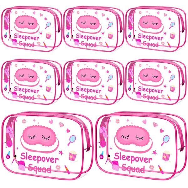Aliceset 8 Pcs Sleepover Party Supplies Sleepover Squad Makeup Bags Slumber Birthday Party Favors Spa Squad Cosmetic Bag Spa Stuff Waterproof Toiletry Pouches Girls Night Decorations (Rose Red)