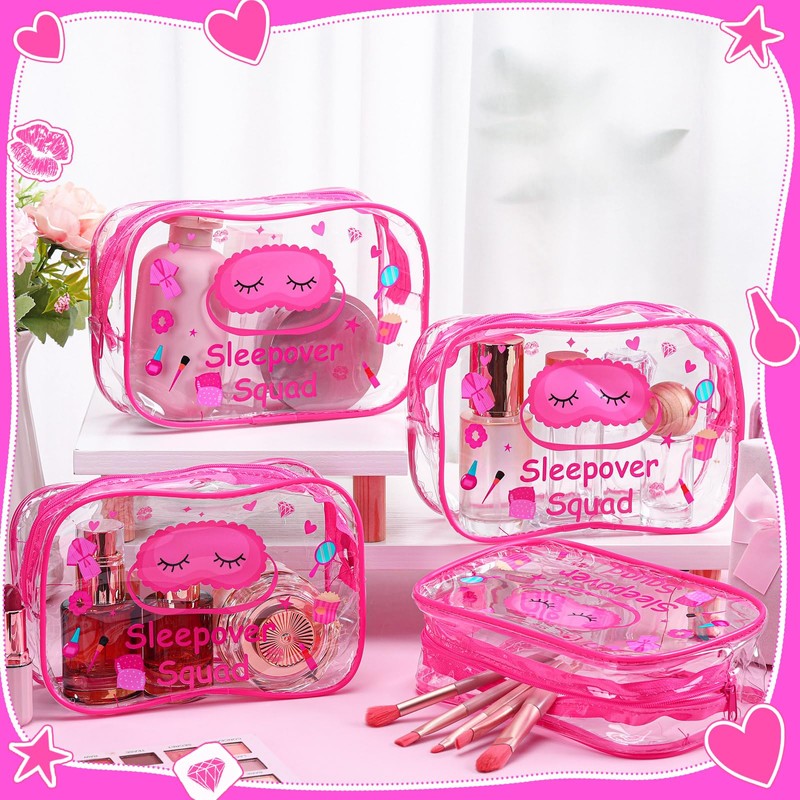 - Travel Friendly Design: measuring about 7 x 4.7 x 2.4 inches/ 18 x 12 x 6 cm, these sleepover party cosmetic bags are lightweight yet spacious enough for lipsticks, creams, and mini toiletries; The slim profile fits easily in purses, backpacks, or suitcases, ideal for sleepovers, vacations, or gym trips