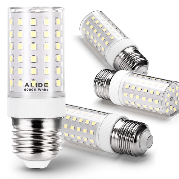 ALIDE E26 100W Replacement LED Candelabra Corn Bulbs,6000K Bright Daylight White,E26/E27 12W LED Light Bulbs 1200LM for Ceiling Fan Chandelier Pendant Lighting Refrigerator,Non-dimmable,4 Pack