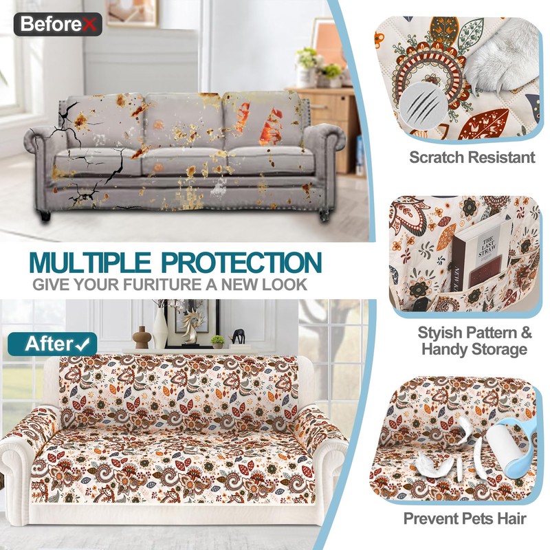 - Stylish Pattern & Handy Storage: Enhance your living space with our furniture covers! Choose from a variety of attractive, modern or boho printed patterns to complement any home decoration style. Beyond looking great, our slip covers for sofas/couches features convenient built-in side pockets on both left and right armrests. These practical pockets offer easy storage for remotes, magazines, or other small essentials right where you need them