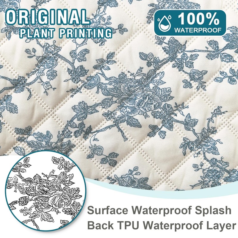 ALIECOM 100% Waterproof Couch Cushion Covers for Sectional Sofa Printed L Shaped Corner Sectional Couch Cover for Dogs Pets Non Slip Seat Slipcover Furniture Protector (XX-Large, Beige & Blue)