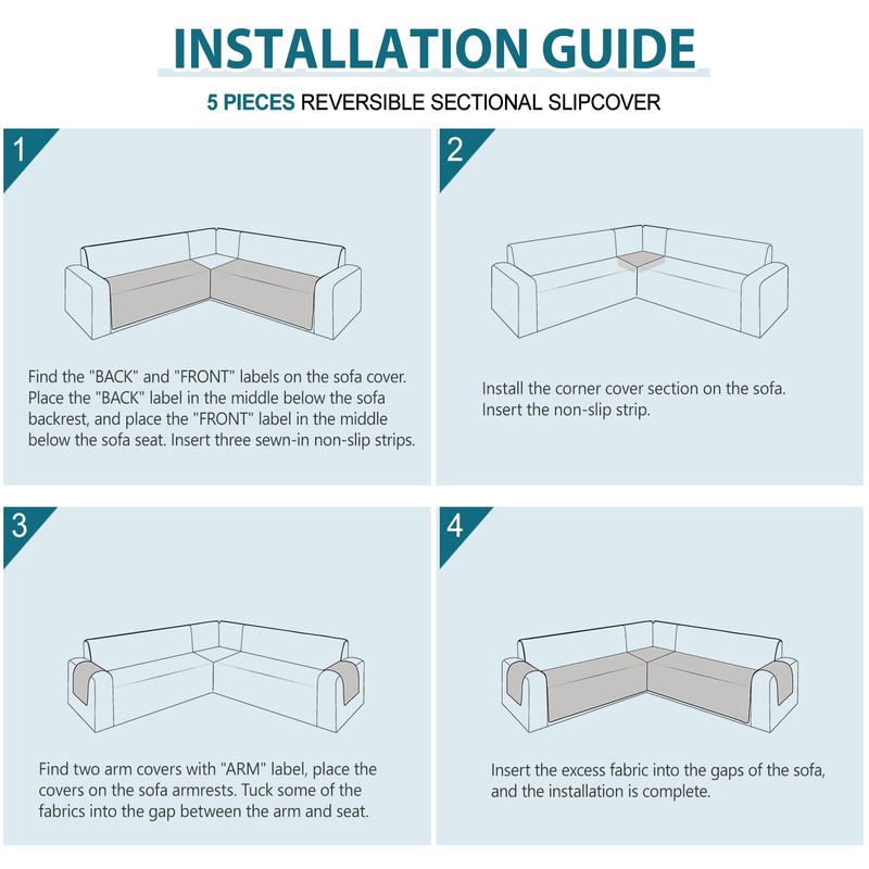 • Easy Install & Machine Washable: The sectional sofa cushion covers can be installed in minutes! Follow the included installation guide. Unfold, position, tuck - done. Toss slip covers in your washing machine (cold gentle cycle) when dirty; The sectional slipcovers couch seat covers come out fresh without shrinking. Air dry for quick reuse. Save time on upkeep while keeping your sofa pristine
