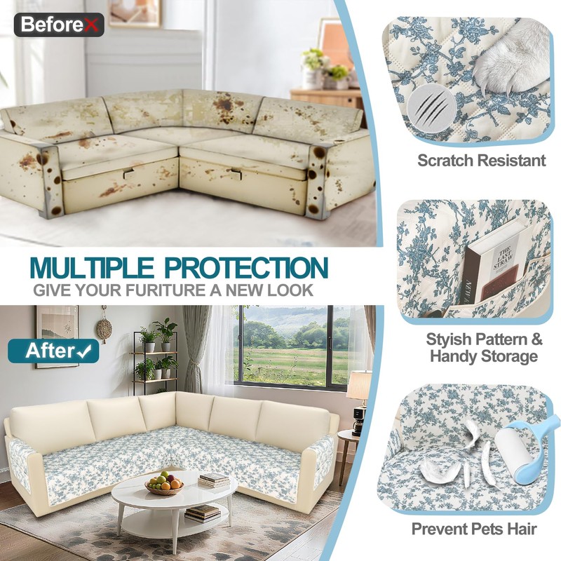• Premium 4-Layer Quilted Comfort: Crafted with thick filling sandwiched between 4 quilted fabric layers, these l shaped couch covers for sectional sofa deliver cloud-like softness and lasting resilience. The double-stitched diamond pattern adds elegance while reinforcing durability. Choose from modern geometrics or boho florals, our fade-resistant prints suit any home styles. Refresh worn-out sofas for superior comfort