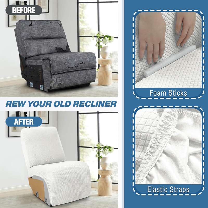 - Convenient Installation: The universal sectional recliner sofa cover washable is extremely easy to put on and take off. According to the installation guide, one person can complete the installation within a short period of time.The elastic straps of the recliner cover that can snugly wrap around the bottom of the recliner to prevent slipping. Anti-slip foam rods are provided to secure the recliner slipcovers firmly to the recliner