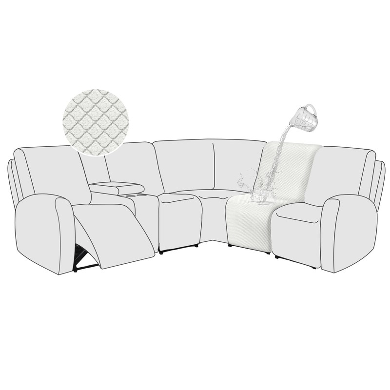 ALIECOM 100% Waterproof Sectional Recliner Couch Covers L Shape Jacquard Stretch 1-Piece Additional Reclining Sofa Cover Washable Armless Corner Seat Slipcover Protector (1 Seat, White)
