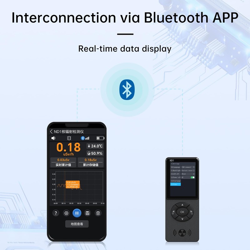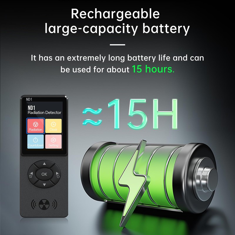 - [Smart Alarm] Provides 2 alarm modes: vibration/sound. The Geiger counter can set the current dose alarm value and the cumulative dose alarm value. Whether in sleep or active state, if the detected radiation dose exceeds the alarm threshold, the radiation monitor will sound an alarm.