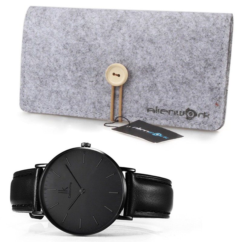 Alienwork IK Men's / Women's Ultra Flat Slim Watch with Leather Strap