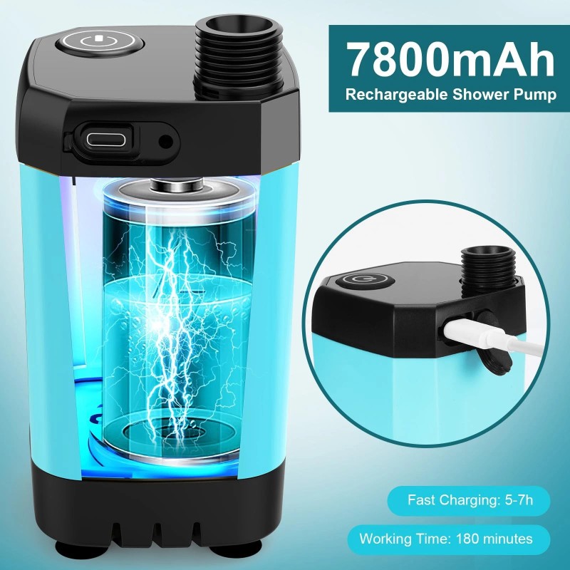 - LONG-LASTING POWERThis portable shower for camping has 7800mAh battery capacity, and can work continuously for more than 180 minutes on a single charge. In addition, its Type C interface allows for convenient mobile charging, also and interface with waterproof cap, safe to usemaking this product the suitable solution for your outdoor shower