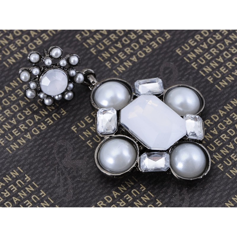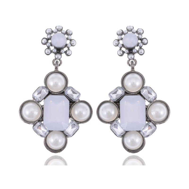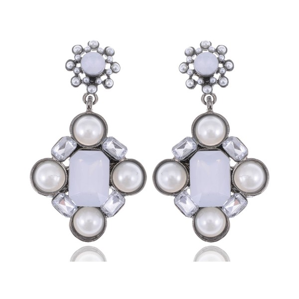 Alilang Antique Silver Tone Faux Pearls Geometric Clear Rhinestones Dangle Earrings