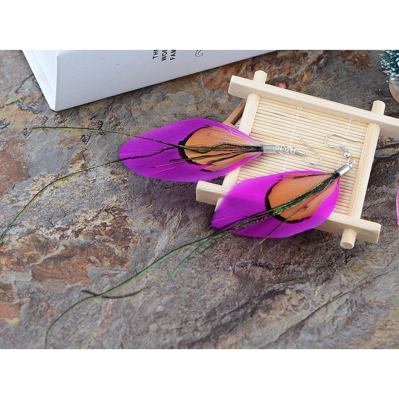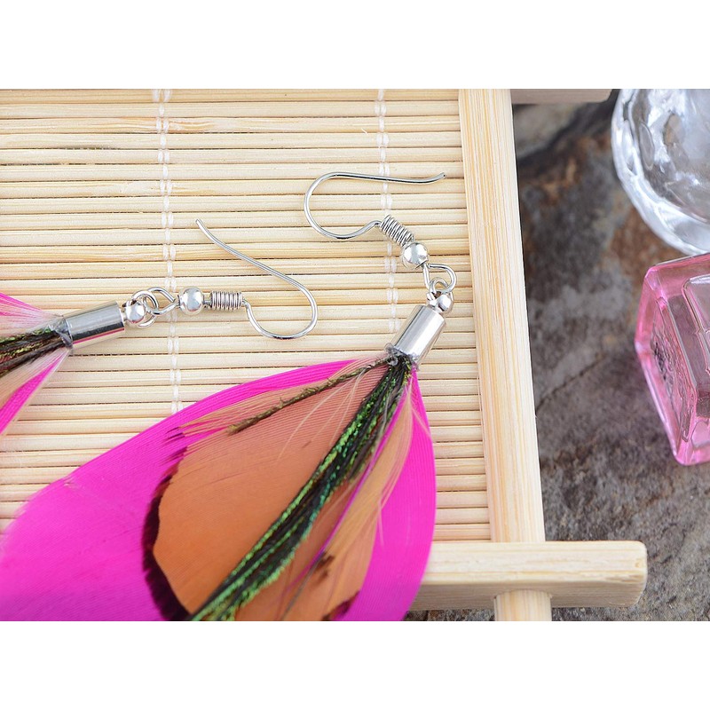 Alilang Neon Hot Pink Brown Boho Retro Feather Dangle Drop Hook Earrings