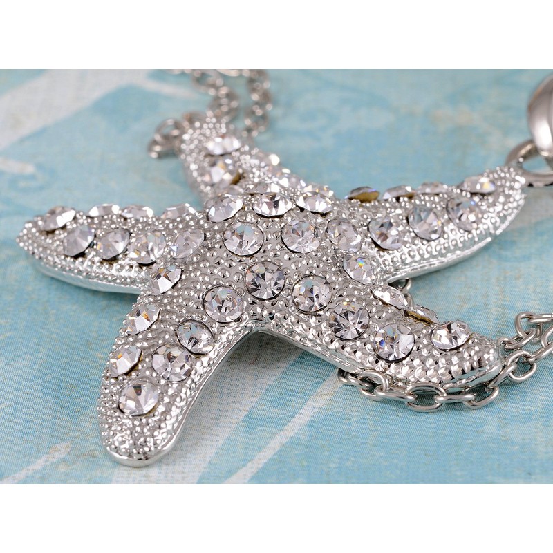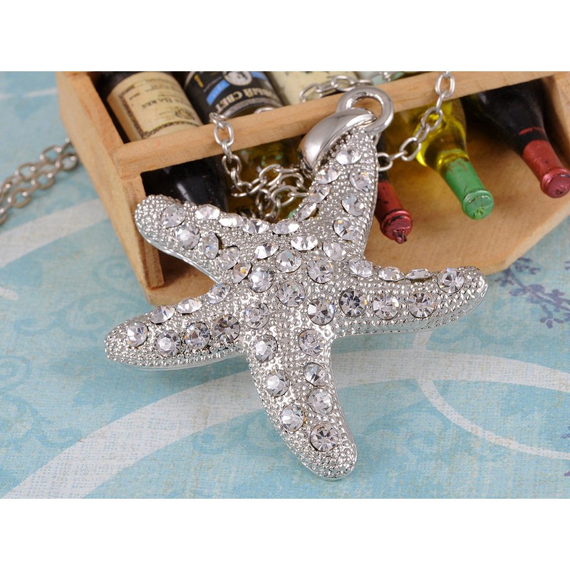 Alilang Pretty Star Fish Crystal Rhinestones Necklace Pendant