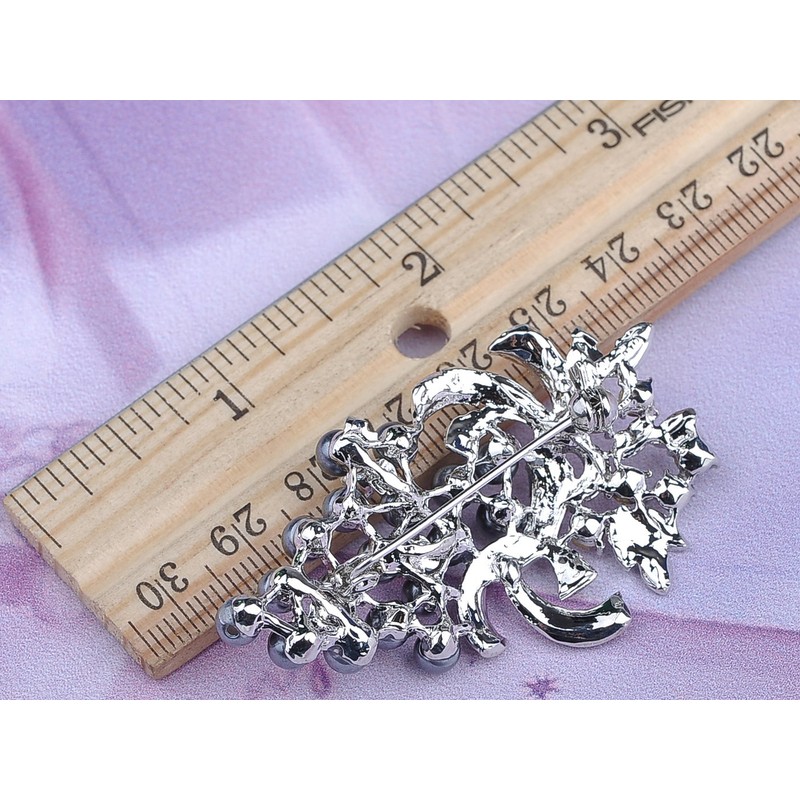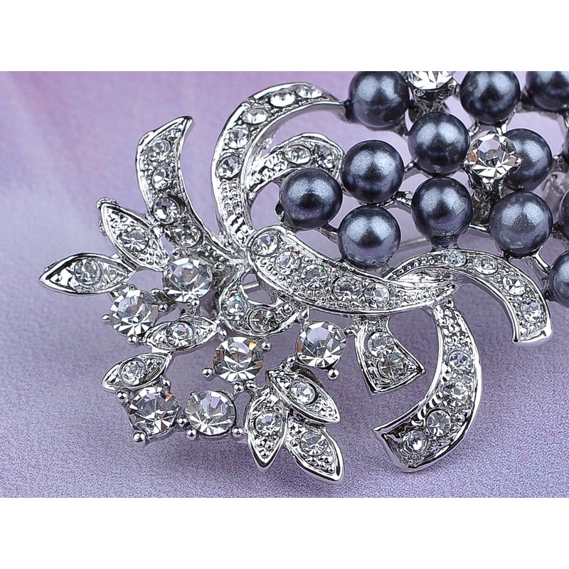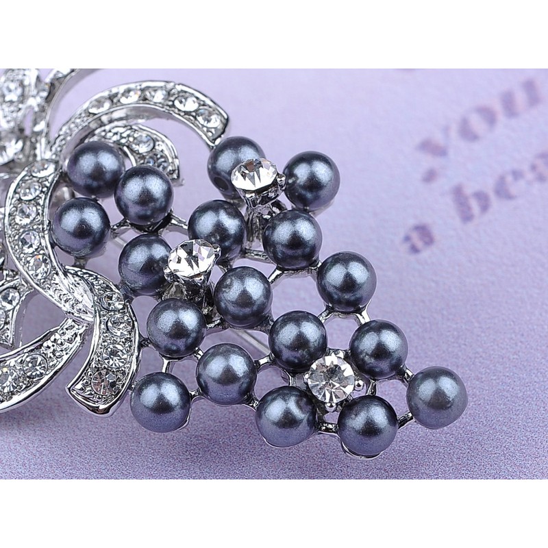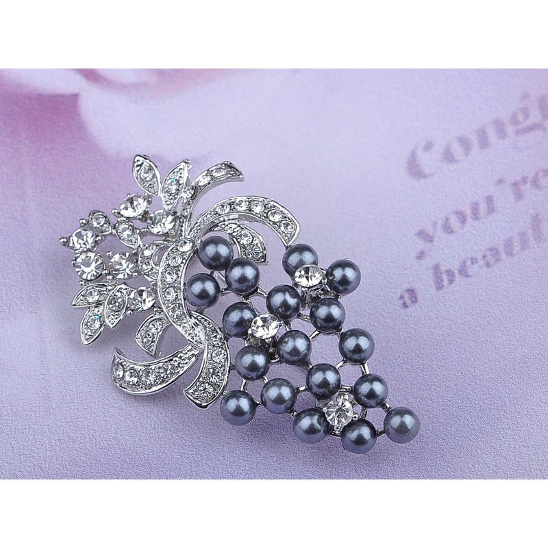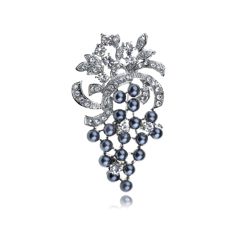 - Features - an elegant brooch featuring a grape fruit design, adorned with sparkling clear crystals rhinestone leaves, faux pearls beads and silvery tone metal alloy base