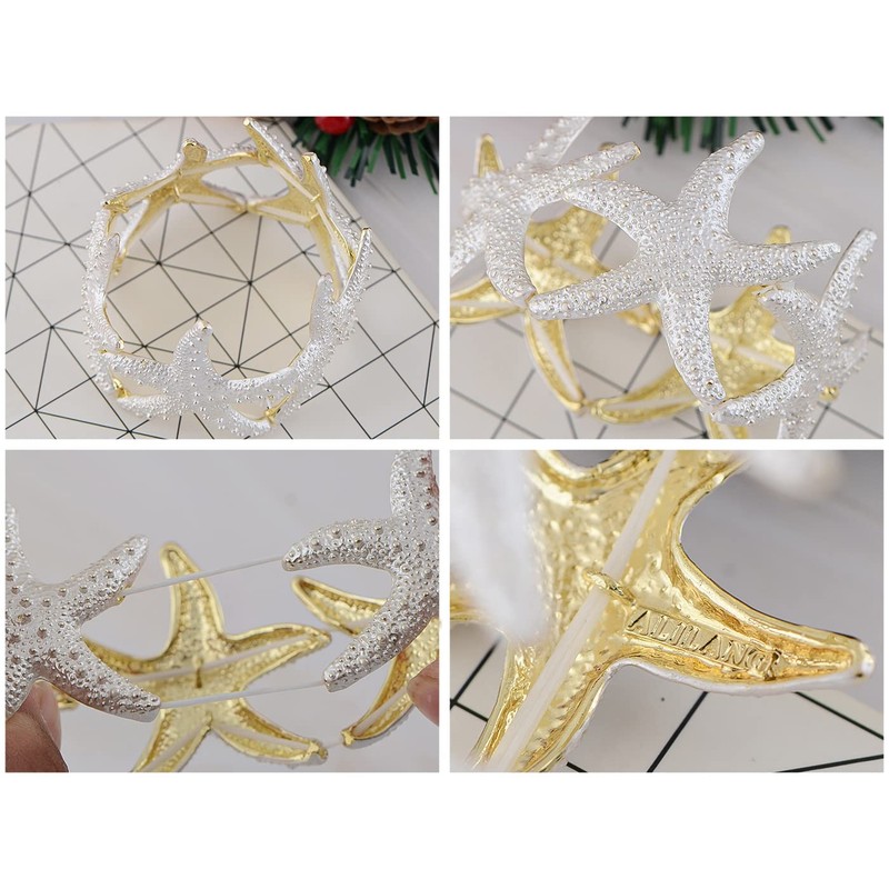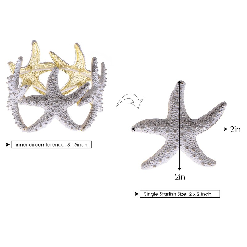 - Five delicate starfish. This stretch bracelet features five textured metal starfish measuring about 2 inches by 2 inches each strung together on an elastic thread. Works great as a bangle bracelet or arm cuff