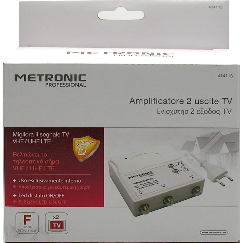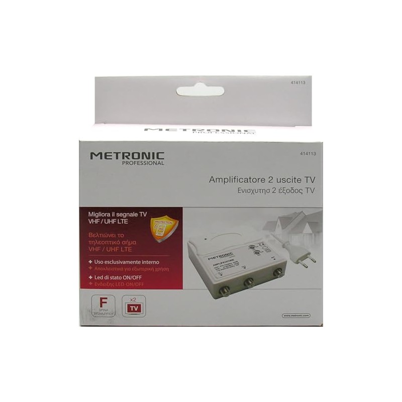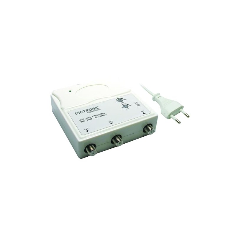 • Operating range: UHF 470 – 790 MHz, adjustable gain VHF 47 232 MHz, VHF: gain adjustable from 0 to 25 db, UHF: from 15 to 30 dB