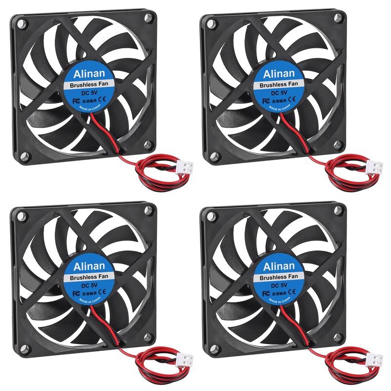 Alinan 4pcs 8010 5V Fan 80x80x10mm 2-pin Sleeve Bearing Brushless DC Cooling 3D Printer Cooling Computer Fan