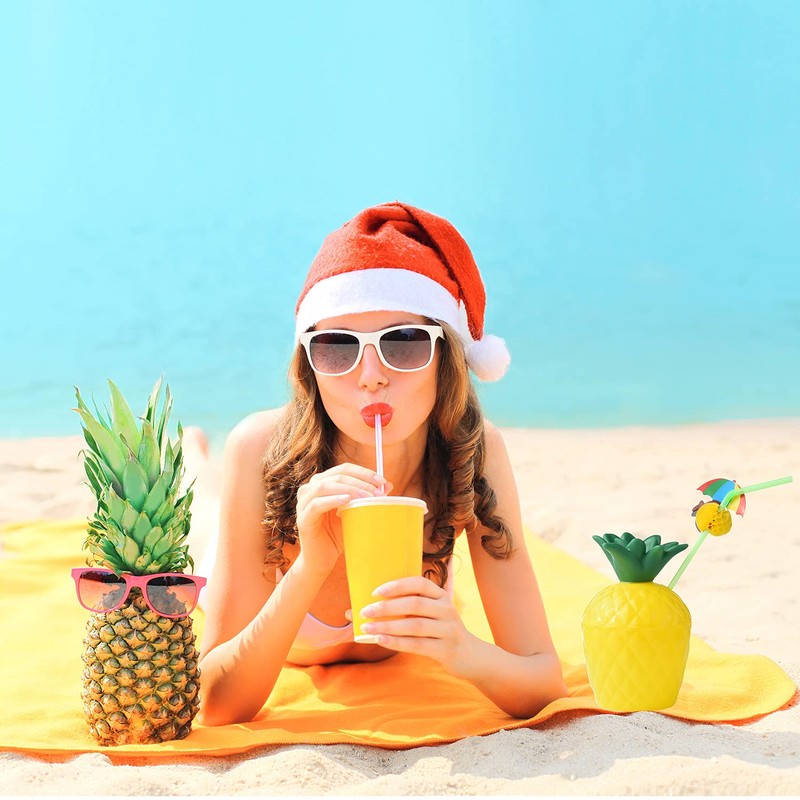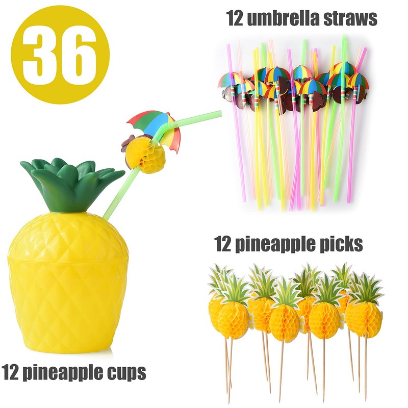 - Include 12 pcs luau pineapple-shaped cups with lids, 12 pcs assorted color umbrella bendable straws and 12 pcs long cocktail pineapple cocktail drink picks