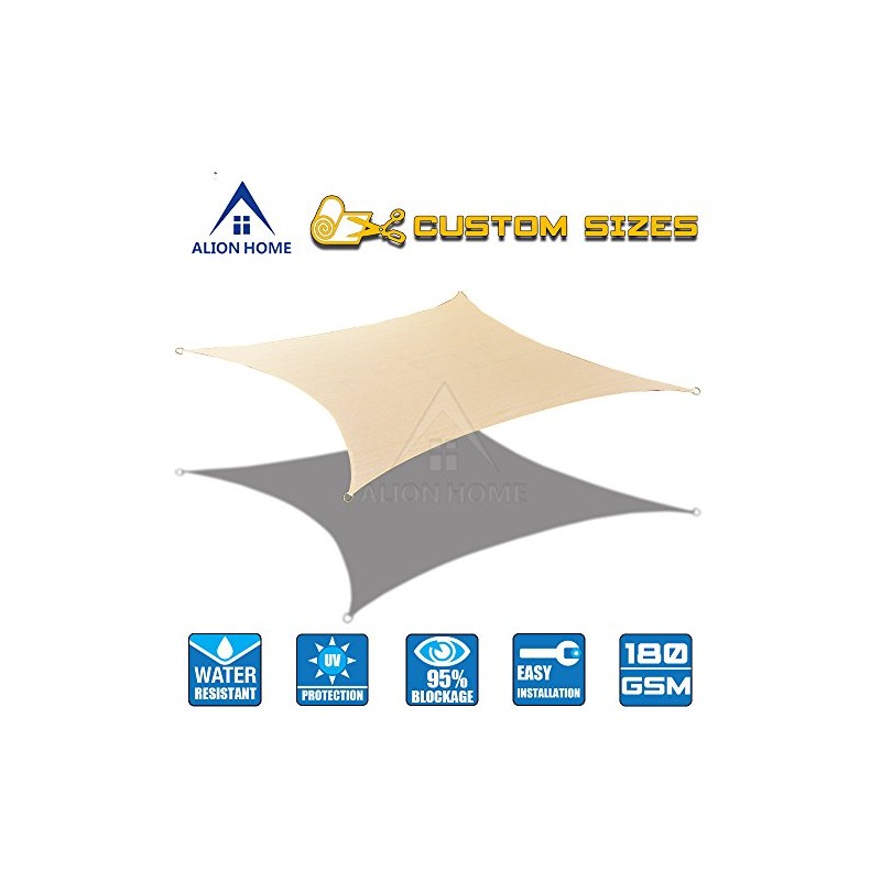 Alion Home HDPE UV Block Curved Edge Sun Shade Sail Permeable Canopy - Square and Rectangle - Custom 185GSM (6' x 12', Banha Beige)